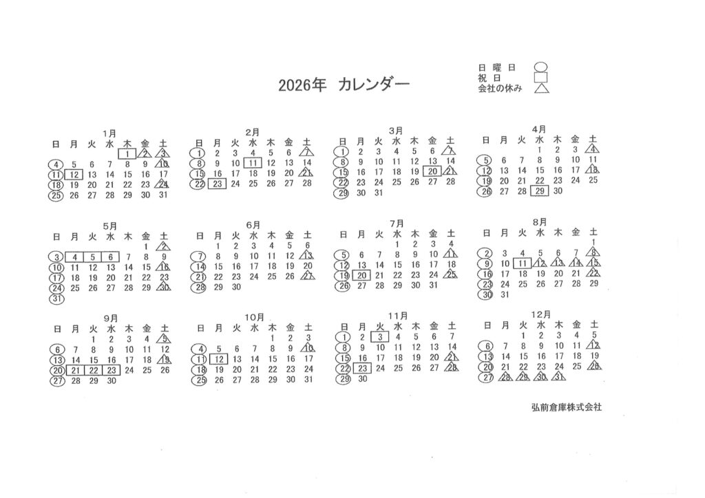 これを受け、当社ではご利用者の皆様に分かりやすくお知らせするため、当社倉庫事業ホームページにおいて、各事業所の営業時間および休日を示した営業カレンダーを掲載いたしました。